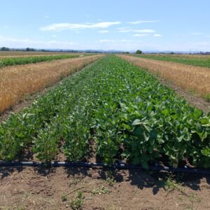 Соја (Glycine max L. (Merr.)) је тренутно у фенофази цвјетања (BBCH 63). Са појавом првих цвјетова почетком јула мјесеца расту потребе за водом и тај максимум се задржава до